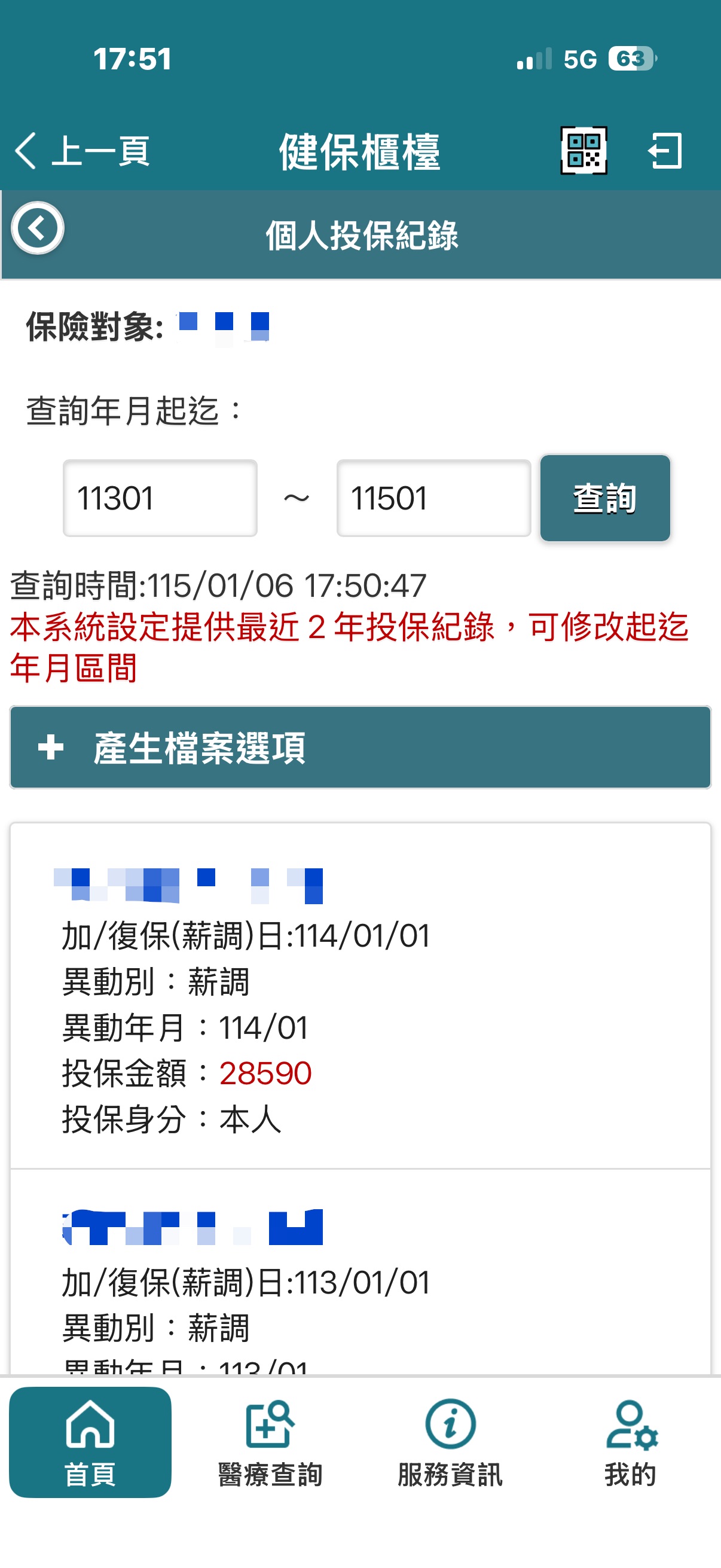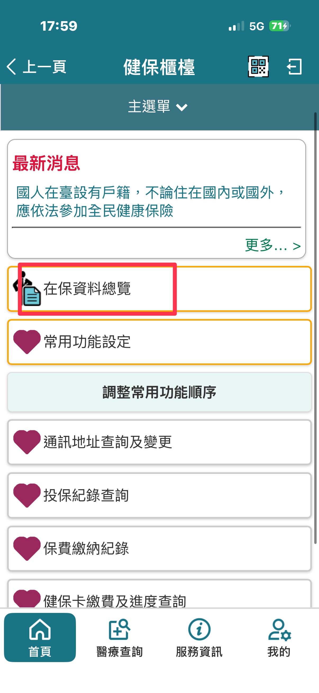- 全民健保行動快易通APP:下載APP後,點選「健保櫃檯」>「個人各項查詢及設定」>「投保紀錄查詢」。