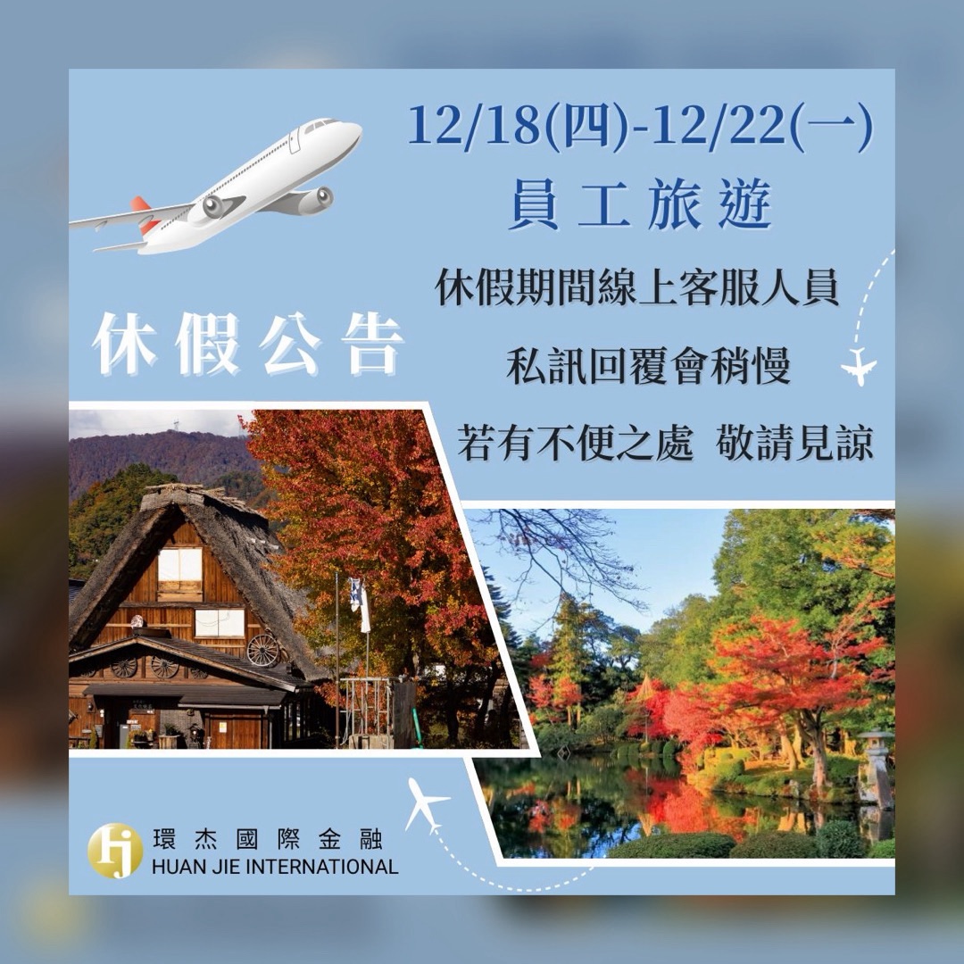 員工旅遊休假公告2025/12/18(四)~2025/12/22(一)